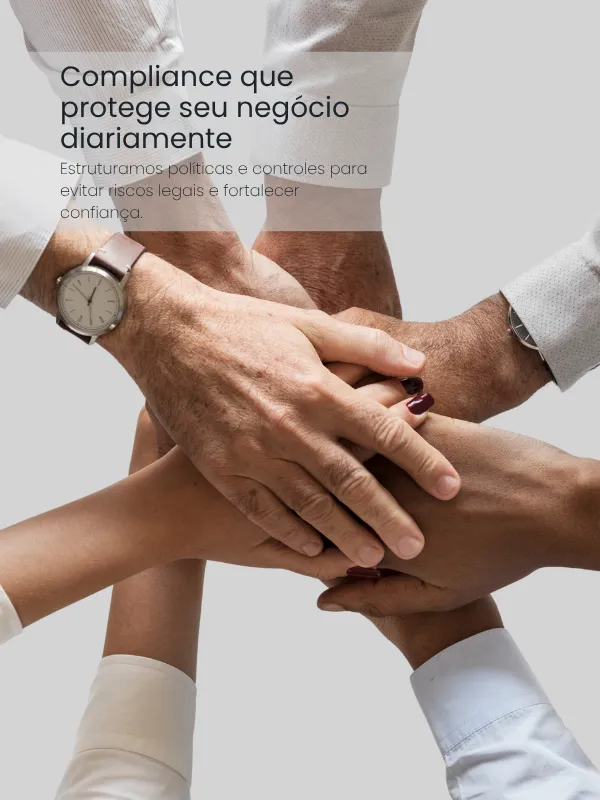 Oferecemos soluções personalizadas de compliance, combinando experiência consolidada, metodologias reconhecidas e resultados mensuráveis, garantindo que sua empresa esteja protegida e alinhada às normas regulatórias.